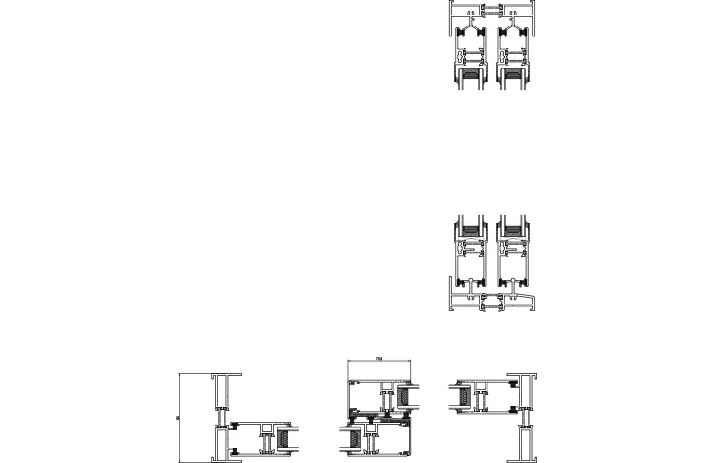 Vertical edge sealing, fixed transoms, upper and lower tracks are assembled using 90-degree end milled screws, while a dedicated connector is used for joining the fixed transoms, upper and lower tracks. The sash materials are assembled with 45-degree corner screws.